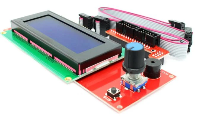 - El controlador incluye además de la pantalla LCD2004, un lector de Tarjetas SD, encoder rotatorio y un buzzer