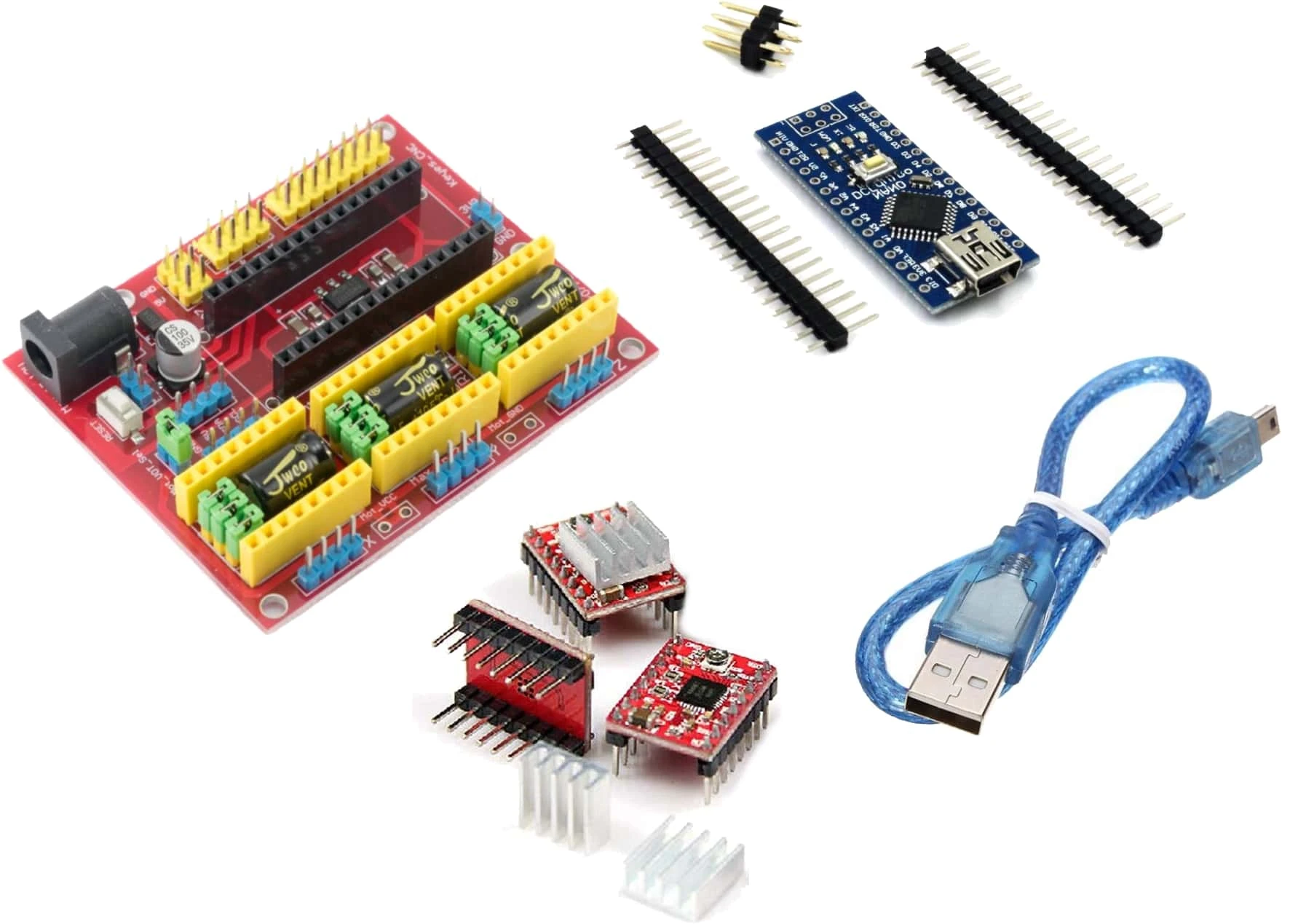 - Jumpers para control de micro-stepping (Los controladores como el DRV8825 soportan hasta 1/32 para más precisión)